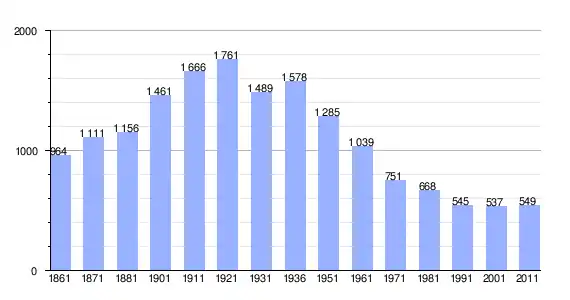 | Variação demográfica do município entre 1861 e 2011[3] |