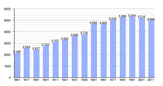 | Variação demográfica do município entre 1861 e 2011[3] |