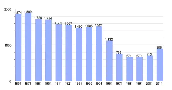 | Variação demográfica do município entre 1861 e 2011[3] |