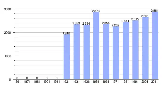 | Variação demográfica do município entre 1861 e 2011[3] |