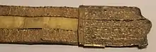 É um cinto de 68 cm de comprimento, formado por pequenas placas de ouro que representam um deus-herói lutando com um leão, grifos alados percorrendo para a direita e palmetas. As figuras impressas realçam sobre o fundo granulado. Talvez tenha sido de um aristocrata que utilizou a iconografia oriental como símbolo de poder e prestígio.[8]