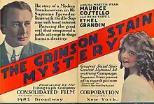 The Crimson Stain Mystery é um seriado estadunidense de 1916, no gênero suspense, dirigido por T. Hayes Hunter.[2] Um co-produção da Erbograph Company & Consolidated Film Corporation, o seriado foi distribuído pela Metro Pictures Corporation e veiculou nos cinemas de 21 de agosto a 4 de dezembro de 1916. Foi a única produção da Consolidated Film, que foi formada para a sua produção.[3] Entre as produções da Erbograph Company, este foi o único seriado e a primeira produção da companhia.