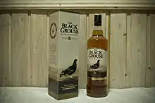 | Uma garrafa de uísque escocês envelhecido da marca The Famous Grouse. | |