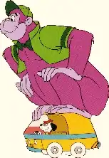 - João Grandão: Um gorila roxo gigantesco - 12 metros de altura - e seu melhor amigo é Espirro, juntos eles vivem grandes aventuras por todos os lugares em que viajam no seu veículo próprio. Espirro é quem dirige o carro que, aparentemente, foi adaptado ao João Grandão, pois suporta o imenso peso deste.