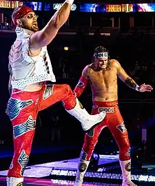 ![]() Colten (direita) e Austin (esquerda) Gunn no AEW x NJPW: Forbidden Door em junho de 2022 2022 | |
