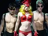 Gaga performando Just Dance e Boys Boys Boys na versão 1.0 (teatro) | ||