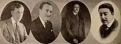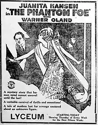 Produção e elenco do seriado The Phantom Foe (1920) (sob o título de trabalho The Mad Malon) apresentando da esquerda para direita o produtor e roteirista George B. Seitz, depois Wallace McCutcheon Jr., William Bailey e Warner Oland, na pg 42 de 7 de fevereiro de 1920, Exhibitors Herald.