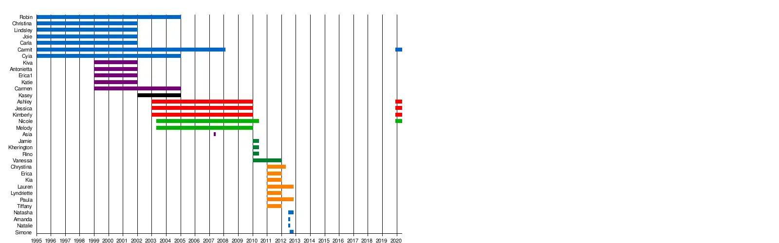Linha do tempo das integrantes do conjunto musical