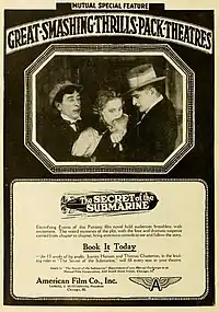 The Secret of the Submarine é um seriado estadunidense de 1915, no gênero aventura, dirigido por George L. Sargent, estrelado por Juanita Hansen e Tom Chatterton. Produzido pela American Film Company e distribuído pela Mutual Film Corporation, veiculou nos cinemas estadunidenses entre 22 de maio de 1915 e 28 de agosto de 1916.[4] O seriado relata a defesa de um submarino estadunidense contra os russos e japoneses, e foi escrito em busca do envolvimento dos EUA na Primeira Guerra Mundial, pelo correspondente de guerra Richard Barry.[5]
