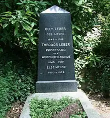 Theodor von Leber foi sepultado no Bergfriedhof (Heidelberg).[1]