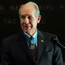 - «Decorated Veteran Who Received Birthday Surprise From Navy Dies». CBS. 13 de novembro de 2017. Consultado em 13 de novembro de 2017