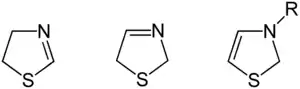 Tiazolinas (ou diidrotiazóis) são um grupo de compostos heterocíclicos de 5 membros isoméricos contendo tanto enxofre quanto nitrogênio no anel. Embora tiazolinas não substituídas raramente sejam encontradas, seus derivados são mais comuns e alguns são bioativos. Por exemplo, em uma modificação pós-traducional comum, resíduos de cisteína são convertidos em tiazolinas.[1]