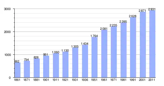 | Variação demográfica do município entre 1861 e 2011[3] |