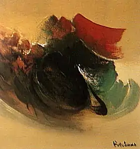 No mesmo ano fez várias exposições individuais, todas no estado de São Paulo, sendo uma em Araçatuba, uma em Lins, uma em Marília e outras duas na cidade de São Paulo.[38] Essa exposição é o desprendimento do artista do movimento figurativo,[39] aliás, essa mostra itinerante foi batizada pelo artista como "A exposição de despedida do figurativismo",[32] que rendeu o equivalente à compra de dois carros na época, mas esse dinheiro não chegou de forma integral para o artista, pois o banco faliu, sendo que o artista afirmou que esse "foi o primeiro, mas não o último golpe que sofri com a economia brasileira".[40] Ivo Zanini descreve a passagem de Fukushima do figurativo para o abstracionismo, segundo ele: "Por vários anos (de 1946 a 1960) movimentou-se pelo figurativismo, quando fundou em São Paulo, no bairro do Paraíso, o Grupo Guanabara, que reunia artistas já em plena convivência com as oscilações da arte moderna" e continua, exemplificando os temas das pinturas: "Mas o abstracionismo, já largamente exercido na Europa e EUA, não tardaria a cooptar Fukushima, como aconteceu com numerosos outros artistas figurativos da época. Portas e janelas, árvores e flores, xícaras e bules, retratos e nus, aos poucos começaram a dar lugar a riscos e traços, à linguagem informal. A busca agora era para as formas e construções que transcendessem a figura e para as cores, plácidas ou ardentes, que pudessem manifestar unicamente harmonia conjuntural". Zanini continua com seu comentário sobre as mudanças do pintor: "E foi concentrando-se na necessidade do desdobramento figurativo-informal, preocupado em pintar com espontaneidade na busca de transmitir sensações e verdade interior, na base do gestualismo, que Tikashi Fukushima pesquisou e enveredou pelo abstracionismo. Tornou-se quase obsessivo na pintura de telas onde se fundem imagens que podem sugerir mares infinitos, ventos cruzando desertos ou montanhas, manhãs outonais, miragens, território virgens, crepúsculos serranos, brisas, sonhos, serenidade celestial, etc. Um mundo onírico, por onde viaja, talvez até como se fosse em outro planeta, em que só o lirismo não pode estar ausente".[41]