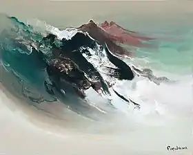1970 foi o ano ao qual retorna para o Japão, pela primeira vez, desde que imigrou para o Brasil.[60] Quando retorna ao Brasil começa a pintar a série "Quatro Estações", onde ilustrou as montanhas da ilha de Honshu, Japão. E a partir de então, faz isso dezenas de vezes em quadros de grandes dimensões.[61] Essa é uma nova série de abstratos, onde retrata, especialmente, as montanhas, o movimento dos ventos e as ondas do mar.[60] No mesmo ano, organizou uma mostra individual em São Paulo,[38] além de exposições coletivas que contaram com suas obras foram a Exposição Mundial de Osaka e na Pinacoteca do Estado de São Paulo.[34] A Revista Veja, em um artigo chamado "A poesia do abstrato", cita três quadros do artista, da seguinte maneira: "os quadros de Tikashi Fukushima como que captam uma coreografia espacial complexa. Num campo ocre, formas indefinidas verdes, vermelhas, negras, esvoaçam numa dança imaterial. Massas pastosas, que lembram tintas escorrendo, confluem e se separam, de forma rítmica e musical. Noutra tela, travam-se batalhas aéreas, núcleos de côr chocam-se dramaticamente em meio a nuvens volumosas, sopradas pelo vento e tocadas pelo poente. Mesmo os movimentos violentos, de côres em fuga, são sempre contidos por uma atmosfera profundamente poética e elegante".[8] Em 1971, foram organizadas quatro exposições individuais, uma em Brasília e outras duas no Rio de Janeiro,[38] e em março do mesmo ano, também se tem o conhecimento de que a União Panamericana lhe dedicou em Washington D. C. uma exposição individual.[62] No mesmo ano, Walter Zanini, que na época era diretor do Museu de Arte Contemporânea da Universidade de São Paulo,[63] irmão do também crítico Ivo Zanini,[64] escreveu sobre a obra de Fukushima dizendo que: "utilizando meios impressionistas de início, passou para a pintura mais conceptual, influenciada pelo cubismo assimilado à contemplatividade fantasiosa de sua mente. Abriu caminho para um espaço mais intuitivo e informal onde os ouros, os pretos, e sobretudo os verdes e os vermelhos encontram os diapasões mais delicados, associados e colocados em oposições complementares..."[65]