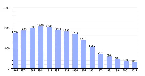 | Variação demográfica do município entre 1861 e 2011[3] |