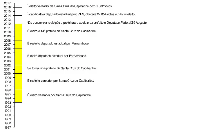 Entrou na política em 1992 como vereador em Santa Cruz do Capibaribe, foi reeleito em 1996. em 2000 foi eleito vice-prefeito na chapa de Zé Augusto, ficando no cargo até 2002, quando foi eleito Deputado Estadual a primeira vez pelo extinto PSD com 23.586 votos. Se reelegeu deputado estadual em 2006 pelo PTB, desta vez com 32.284 votos.