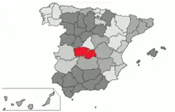 | Fronteiras: | A Norte com Castela e Leão (Ávila) e Madrid, a leste com Cuenca, a Sul com Cidade Real, e com a Estremadura (Badajoz a sudoeste e Cáceres a oeste) |