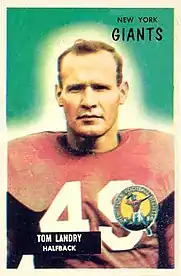 Para a temporada de 1954, Landry se tornou o coordenador defensivo do New York Giants, ao lado de Vince Lombardi, coordenador ofensivo[26]. Ambos mais tardes tornar-se-iam treinadores membros do Pro Football Hall of Fame. Tom liderou um dos melhores times defensivos da liga de 1956 a 1959; e ambos os dois treinadores criaram uma lealdade dentro da unidade que treinaram, levando os Giants a três aparições no NFL championship Game em quatro anos. Em 1956, o Giants derrotou o Chicago Bears, liderado por Paddy Driscoll por 47 a 7[27], mas perderam para o Baltimore Colts em 1958 na partida conhecido por ser a "The Greatest Game Ever Played" ou "A melhor partida da dsputada"[28], e em 1959[29].
