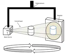 A Tomografia computadorizada de feixe cônico (CTFC) também conhecida com tomografia computadorizada Cone Beam usa um feixe cônico de raios X com forma redonda ou retangular centralizado num sensor bidimensional para realizar uma varredura numa rotação de 360 graus ao redor da cabeça do paciente. Durante a varredura, uma série de 360 exposições ou projeções é adquirida, uma a cada grau da rotação, a qual fornece dados digitais para a reconstrução do volume exposto por algoritmo computacional.