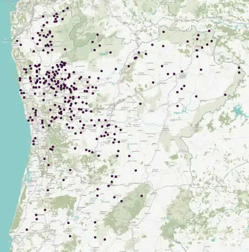 | Distritos / Províncias | Corunha | Lugo | Braga | Porto | Ponte Vedra | Ourense | Viana do Castelo | Aveiro | Viseu | Oviedo | Vila Real | Bragança | León | Girona | Burgos | Coimbra |