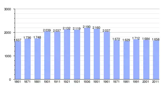 | Variação demográfica do município entre 1861 e 2011[3] |