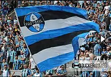A torcida Jovem do Grêmio está sempre presente com suas faixas em todos os jogos do tricolor independente do local.
