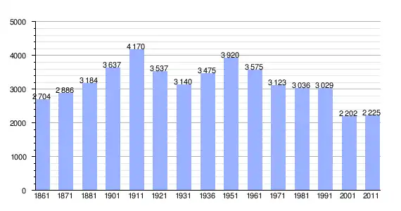 | Variação demográfica do município entre 1861 e 2011[3] |