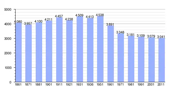 | Variação demográfica do município entre 1861 e 2011[3] |