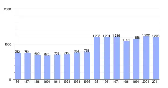 | Variação demográfica do município entre 1861 e 2011[3] |