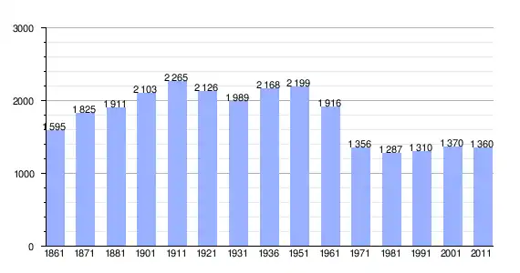 | Variação demográfica do município entre 1861 e 2011[3] |