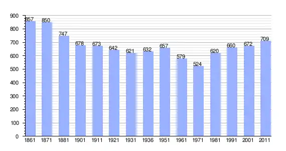| Variação demográfica do município entre 1861 e 2011[3] |