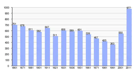 | Variação demográfica do município entre 1861 e 2011[3] |