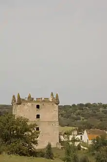 Vizinha do rio Divor e do Santuário de Nossa Senhora das Brotas, integrava a chamada vila das Águias, da qual ainda subsistem algumas casas. É um dos exemplares mais significativos de torres manuelinas na região (Torre do Esporão, Solar da Camoeira), Castelo de Torre de Coelheiros e Quinta da Torre do Carvalhal), embora careça de urgente intervenção de consolidação e restauro por parte do poder público.