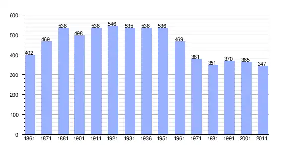 | Variação demográfica do município entre 1861 e 2011[3] |