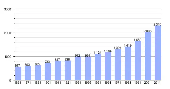 | Variação demográfica do município entre 1861 e 2011[3] |