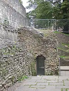 - Este edifício é o piso inferior de uma torre construída em uma brecha em uma muralha romana no século quatro, talvez no reinado do rei Eduíno da Nortúmbria (616 - 632). Foi escondida sob os dinamarqueses, e sob muralhas posteriores, e redescoberta em 1839.