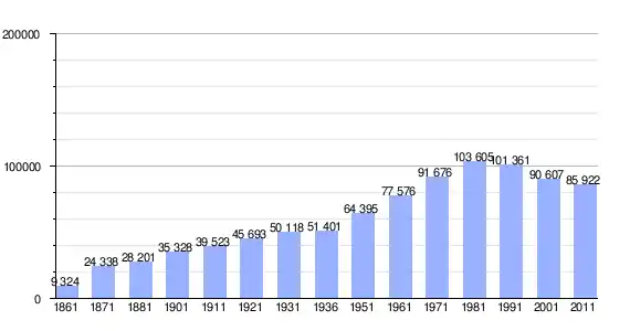 | Variação demográfica do município entre 1861 e 2011[3] |