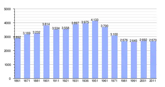 | Variação demográfica do município entre 1861 e 2011[3] |