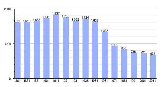 | Variação demográfica do município entre 1861 e 2011[3] |