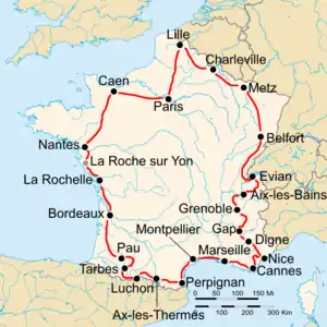 Dos 69 ciclistas que largaram, chegaram em Paris 39 ciclistas. Nesta edição foi incluida pela primeira vez uma etapa de corrida Contra-relógio individual.