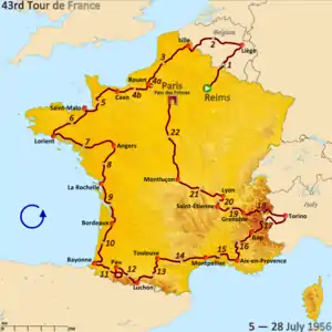 O Tour de France 1956 foi a 43º Tour de France, teve início no dia 5 de Julho e concluiu-se em 28 de Julho de 1956. A corrida foi composta por 22 etapas, no total mais de 4498 km, foram percorridos com uma média de 36,268 km/h.