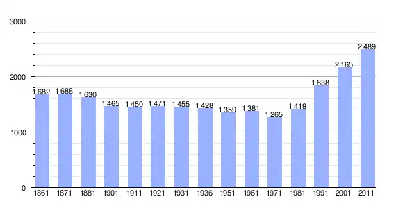 | Variação demográfica do município entre 1861 e 2011[3] |