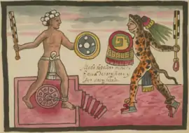 Depois de servir o rei de Culhuacan, os astecas subiram na hierarquia da região e ficaram subordinados a uma das filhas do rei. De acordo com relatos mitológicos, os astecas sacrificaram a filha do rei e esfolaram sua pele, ainda segundo o relato isso foi feito por ordem de seu deus Huitzilopochtli.[7] Quando o rei dos Culhuacan soube disso, atacou os astecas e os expulsaram de suas terras. Os astecas, então, mudaram-se para uma ilha no meio do lago Texcoco, onde uma águia estava aninhada em um cactus nopal. Os Mexica interpretaram isso como um sinal de seu deus e fundaram sua nova cidade, Tenochtitlan, em 1325.[8]