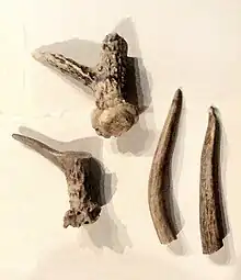 Algumas lâminas, porém, são de pedra polida ou semi-polida, e outras exibem gumes serrilhados, produzidos com instrumentos feitos de osso.[1][4][9] Também aparecem conchas, anzóis curvos, adornos de contas e dentes de tubarão, agulhas.[3][10] Alguns sítios parecem ter servido principal ou exclusivamente como oficinas de produção de instrumentos.[5]