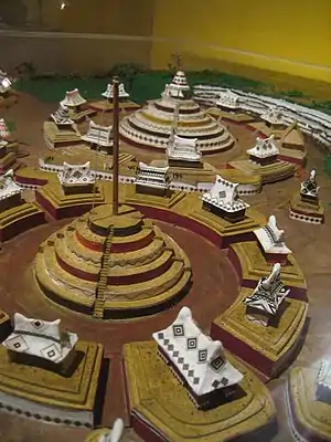 Pensa-se que as pirâmides circulares sejam cosmogramas, representando a estrutura mitológica do universo, e os postes circulares que eram colocados no seu centro a árvore do mundo mesoamericana. Com base nos muitos quadros cerâmicos que foram encontrados, pensa-se de igual modo que cerimónias de voadores eram realizadas no poste.[6]