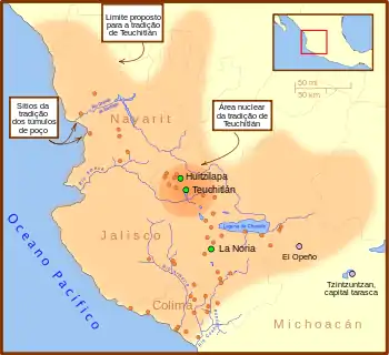 - Este artigo foi inicialmente traduzido, total ou parcialmente, do artigo da Wikipédia em inglês cujo título é «Teuchitlan tradition», especificamente desta versão.