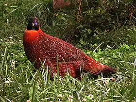 Tragopan satyra | Tragopã-sátiro | Índia, Tibete, Nepal e Butão. |