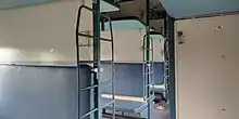 | 2A | AC-Duas fileiras ( AC two tier ): Vagões com ar condicionado e beliches, amplas compartimentos, cortinas e lâmpadas de leitura individuais. Os beliches são geralmente dispostos em duas fileiras em baias de seis, quatro no sentido da largura do vagão, em seguida, o corredor, e então, mais dois beliches longitudinalmente, com cortinas para dar alguma privacidade daqueles que passam pelo corredor. Os leitos estão inclusos com a tarifa. O Vagão de bitola larga pode transportar 48 passageiros. |
