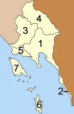 A província está subdividida em 5 distritos (amphoes) e 2 distritos menores (king Amphoes). Os distritos estão por sua vez divididos em 38 comunas (tambons) e estas em 254 povoados (moobans). Os números faltantes abaixo são os distritos que formaram a província de Amnat Charoen em 1993.